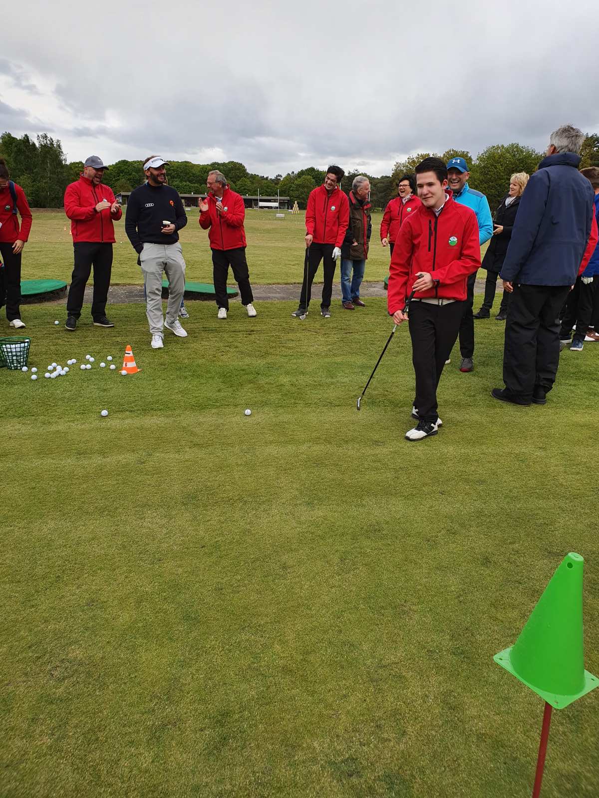 Joost Luiten en Melanie Jane Lancaster op bezoek bij het G-Golf
